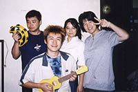 | ぐうぇん ●バンド紹介 写真に写ってるのは6月に佐渡ツア−をしたときのものです。 メンバ−4人のほかに、もうひとり写ってるのは バンド名を拝借させていただいた「Gwen.Onohara」っていう一応、おんなのこです(^0_0^) ●メッセージ ことしは「せ」に出させていただきます。よろしくですm(__)m |