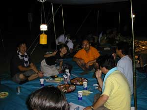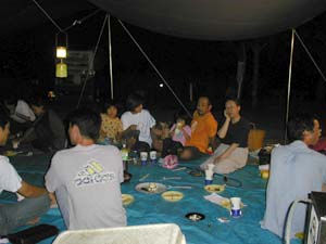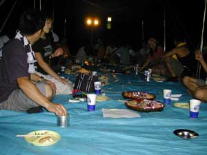2001年8月25日(土) 午後4時より田上町YOU遊ランドにおいて「町内ご近所へうるさくしますのでよろしくビラ配布」&「せーばなる2001を成功させる為の大決起集会」が行われました。 写真は決起集会の模様です。 なおこの場で参加バンドの決意表明が披露されました。 同時に出演順が発表されました。
